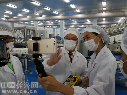 图为媒体记者手机直播生产车间采访现场 经济日报-中国经济网记者 王城 摄