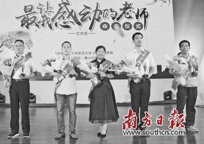 三水教育综合改革初见成效,三水教师功不可没。今年5月,佛山市三水区总工会、佛山市三水区教育局发起寻找“最让我感动的老师”活动。三水区教育局于5月底发动各镇街自行组织评选活动,评选出30名优秀的候选提名老师,并由全社会对他们进行广泛投票,最终评选出10名“最让我感动的老师”和20名“最让我感动的老师提名奖”。据统计,主办方共接收到了12万人次的投票。