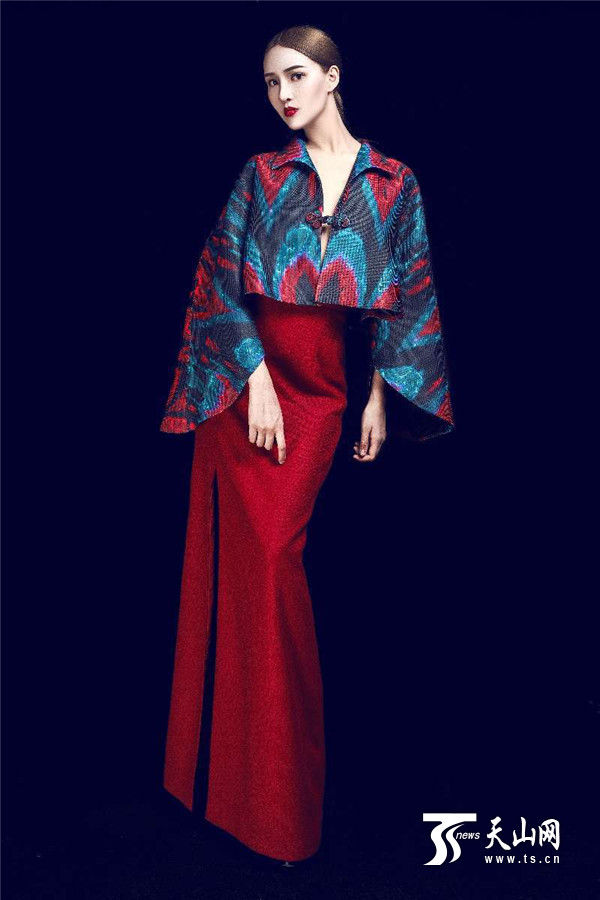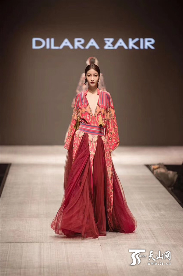 设计师迪拉娜·扎克尔说:“我带了10套与艾德莱斯有关的服装设计作品,这些作品跟传统的艾德莱斯服饰不同,首先我将花纹进行了重新设计,比如石榴纹样、巴旦木纹样等,其次我还将服装的样式进行了改良,使服装既带有民族特色,又具有现代时尚。”