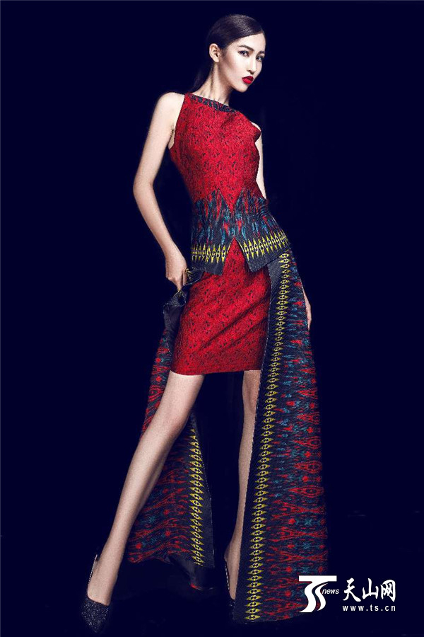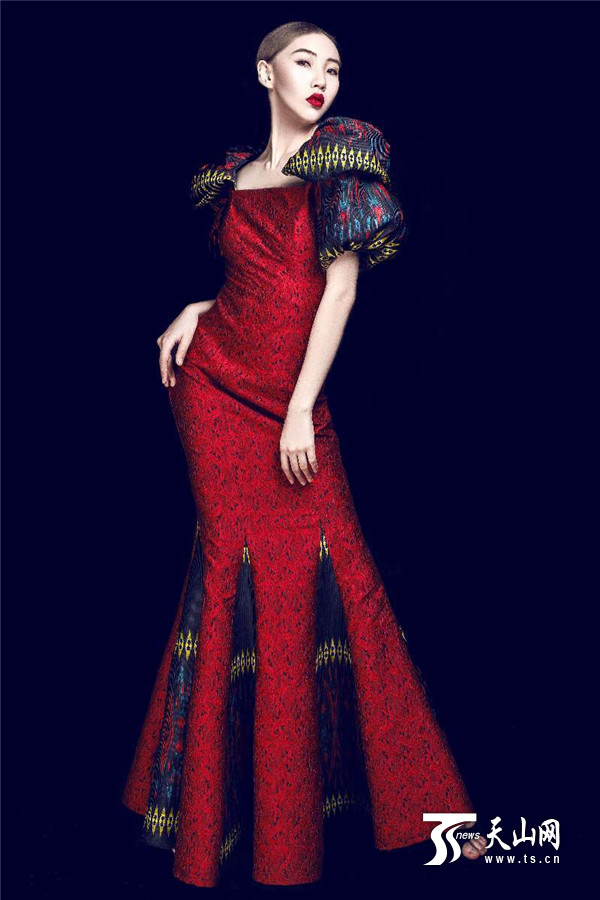 同迪拉娜·扎克尔一样,设计师陶陶此次也带来了艾得莱斯服装设计作品,并赚足了观众的眼球。