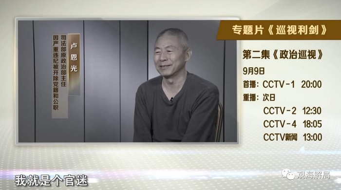 官方提前透露称:“卢恩光是个官迷,但其实他当上副部级干部以后,觉得不一定是好事,因为知道自己戴了一副假面具。”
