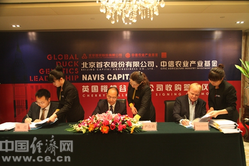 经济日报-中国经济网北京9月11日讯(记者 王城)种鸭繁殖是鸭产品产业链中盈利水平最高的环节之一,也是决定鸭产品质量和市场的核心环节,但过去多年来我国核心育种和种鸭繁育技术一直由国外企业掌控。首农股份与中信农业今天在北京宣布,已签署最终协议,收购英国樱桃谷农场有限公司100%股权。此次收购标志着“北京鸭子”这个百年前流失的品种通过海外并购回归中国,育种技术和专利权由我国全部掌控。