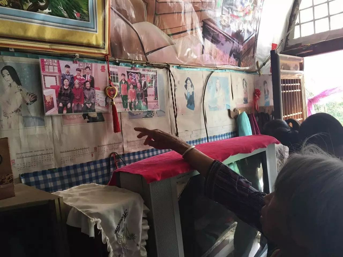马金莲(奶奶)指着墙上孙女新婚时和家人的合影 图 / 卫诗婕