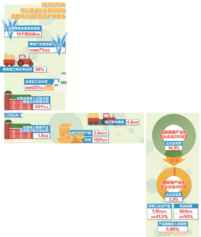 江南大学食品学院原院长、国家粮食安全专家咨询委员会专家委员姚惠源认为,构建全产业链经营模式,有助于创建优质名牌,通过品牌建设,引起整合种植、收储、加工、销售等环节的资源,引导原粮标准化生产,建立一批规模化优质特色专用原粮生产基地。