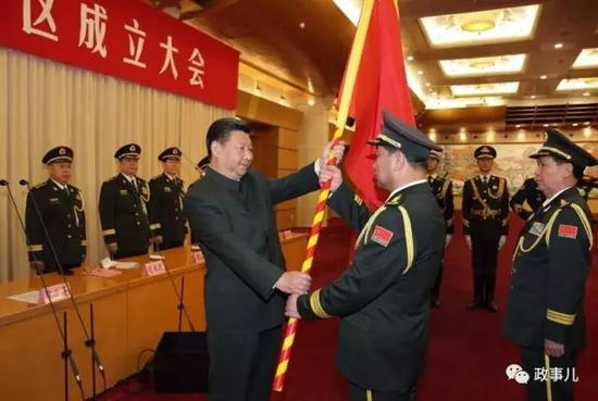 2016年2月1日,中国人民解放军战区成立大会在北京八一大楼举行。习近平向五大战区主官授予军旗并发布训令。