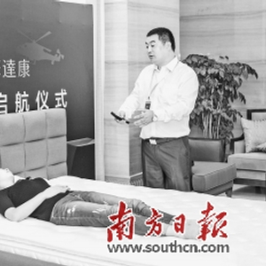 一名女士在体验共享床垫的增值功能。南方日报记者 孙俊杰 摄