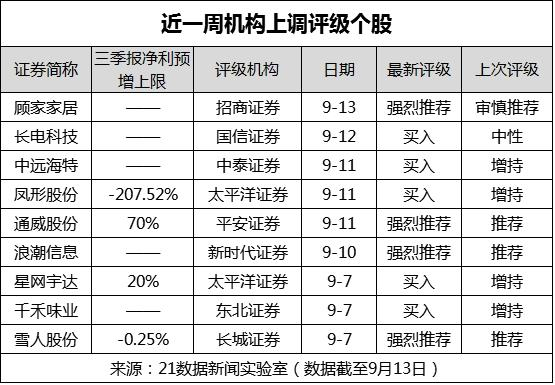 最近一周,机构上调了顾家家居、长电科技等9只个股的评级,不过无一给出明确的目标价。