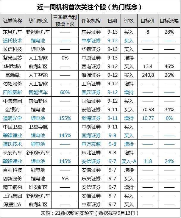 21数据新闻实验室梳理研报还发现,此类相关题材个股也逐渐吸引越来越多的机构首次评级关注,包括近年的十倍大牛股赣锋锂业,以及13日涨停的道氏技术。
