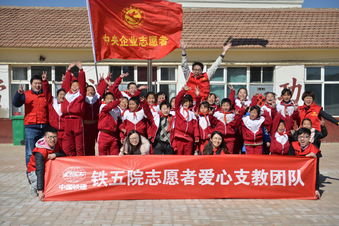 铁五院爱心支教团队与尚义县下马圈乡中心小学孩子们合影