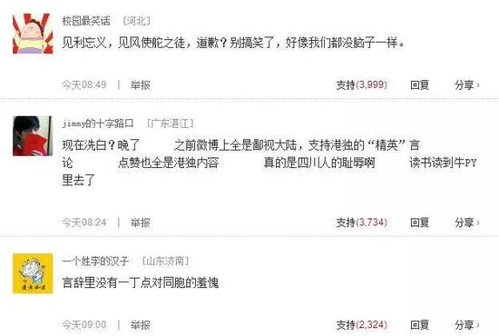 无论如何,唐立培留下了一个人生污点,不管他发多少封道歉声明,这都是抹不去的。“支蛆”是中国人痛感最强的一个侮辱性词汇,由一个内地生的嘴里说出来,伤害性又被加持,犹如一个家庭的逆子用最不堪的语言辱骂父母。