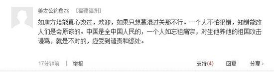 估计是怕人再骂他,唐立培的道歉微博禁止评论。在新浪的消息下面,共有4万多条评论,堪称热议。刀哥大致看了一下,九成九网友表示不相信、不接受唐立培的道歉。