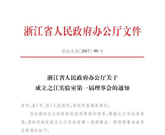 “之江”是钱塘江的别称,意同“浙江”。冠以这个名称,并且三个省部级官员出任理事会高层,足见实验室的“官方背景”。
