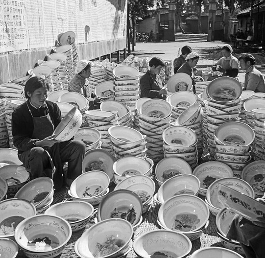 昆明搪瓷厂工人检验产品,摄于1976年