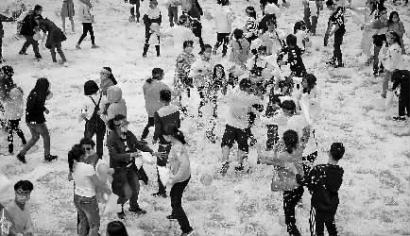 此次枕头大战共购买了420个枕头,花费2100元左右,枕头大战结束后,同学们自发打扫“战场”,将清理出的羽毛送到垃圾站焚烧处理。 新文化记者 蒋盛松 文/图
