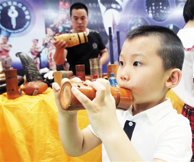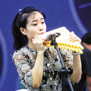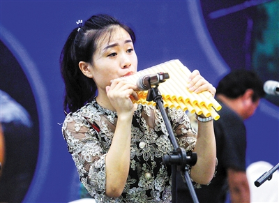 | 双排箫演奏表演。 本报记者 高科 摄 |