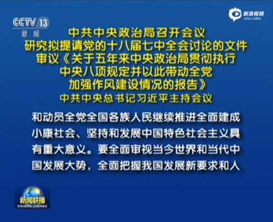 会议指出,党的十八大以来,以习近平同志为核心的党中央以强烈的历史担当和顽强的意志品质,直面党内存在的种种问题和弊端,从制定和执行中央八项规定破题,解决了新形势下作风建设抓什么、怎么抓的问题,进而推动了全面从严治党,推动了党风、政风、社会风气好转。中央八项规定成为管党治党、从严治党的重要抓手,对维护党中央权威、增强党的向心力,对保持党同人民群众的血肉联系都起到了重要作用。