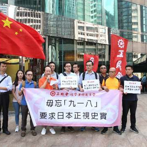 海外网9月18日电 今天(18日),是“九一八事变”爆发86周年。香港有多个团体到日本驻港总领事馆请愿。香港工会联合会一行10多人早上于中环邮政总局集合,拉起写有“毋忘九一八,要求日本正视史实”的横幅,游行至日本驻港总领事馆楼下请愿。