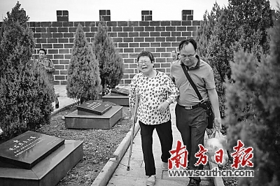 9月10日这天,丘柳英起了个大早,跟着一行人到淅川县烈士陵园后,她拄着拐杖一步又一步向上攀爬,陵园里有两个平台,丘柳英的每一步都很沉重。