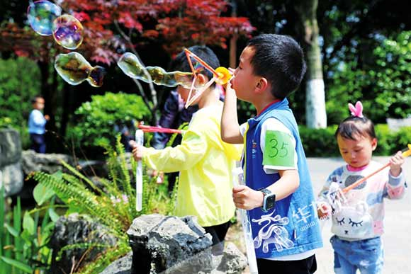 五宝镇“豆豆农场”搭建奇瓜异果长廊吸引游客光顾 江北区委宣传部供图 华龙网发周末市民在鸿恩寺公园游玩 江北区委宣传部供图 华龙网发
