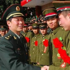 图为2009年12月,时任53基地司令员的周亚宁送别退伍老兵。