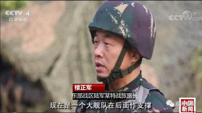 扮演红军的东部战区陆军某特战旅旅长楼正军面对央视镜头介绍,如果说以往渗透,、是特种兵摇一个小渔船出去,那现在不一样了,现在是一个“大舰队”在后面作支撑,所以说整个渗透实力更强、信心更足,渗透中间的各种可用的力量更多,渗透的手段也比原来更多了。