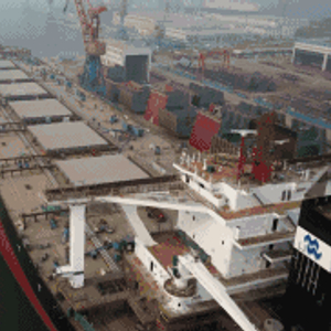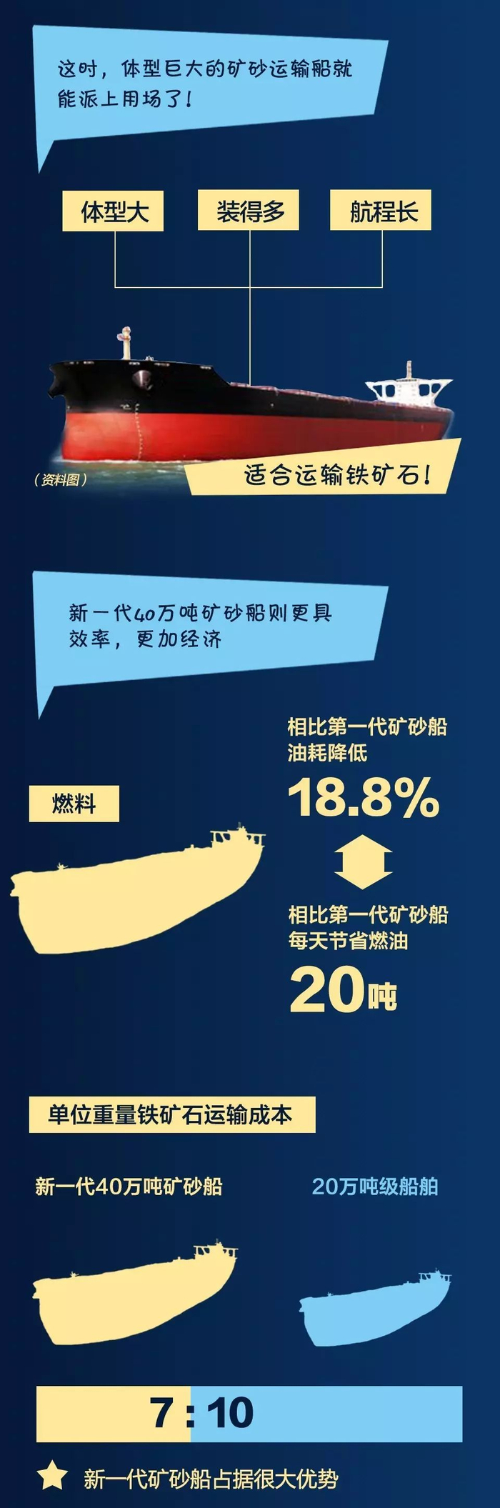 昨天上午,我国制造的世界最大矿砂船——新一代超大型40万吨矿砂船在青岛下水。这标志着该船的船体结构已完成建造,接下来将进行船体电器设备安装和相关性能测试等收尾工作。该型矿砂船总共将建造30艘,分由国内四家船厂制造,主要用于巴西-中国航线的铁矿石运输。