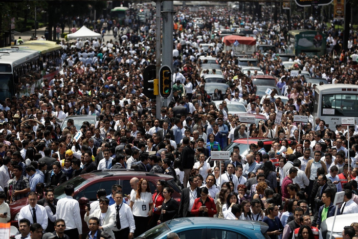 就在今天地震发生的两小时前,为了纪念1985年的地震32周年,墨西哥城组织了一次全民防震演练。墨西哥人阿德里亚纳在地震中迅速跑到安全地带,她说,“多亏今天的演练让我熟悉疏散通道。