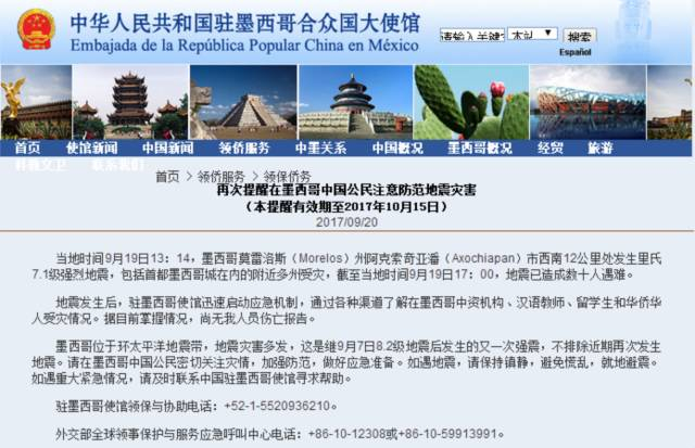 中国驻墨西哥大使馆网站消息称,地震发生后,驻墨西哥使馆迅速启动应急机制,通过各种渠道了解在墨西哥中资机构、汉语教师、留学生和华侨华人受灾情况。据目前掌握情况,尚无中国人员伤亡报告。