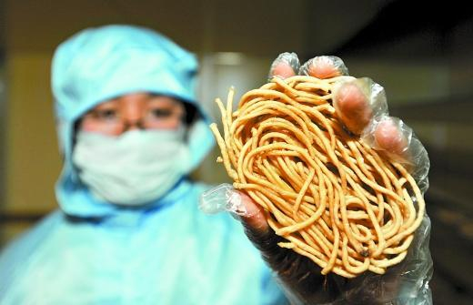 长寿健康科技产业基地,从业人员展示成品的长寿湖鱼肉面