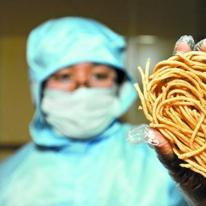 记者了解到,传统的鱼肉面制作工艺简陋、用料数量大导致价格偏高,纯鱼肉面的价格高达130元每斤,消费者难以接受。为了让更多的人品尝到这道美食,陈勇全在探索新产品的道路上下足了工夫。“公司新引进的生产线可以生产新型长寿鱼肉面,这种面是将鱼肉与面粉融合,以面粉为主,取其鱼肉的营养和香味,在市场的售价如同方便面一样便宜,二两一包的只需5元左右。”