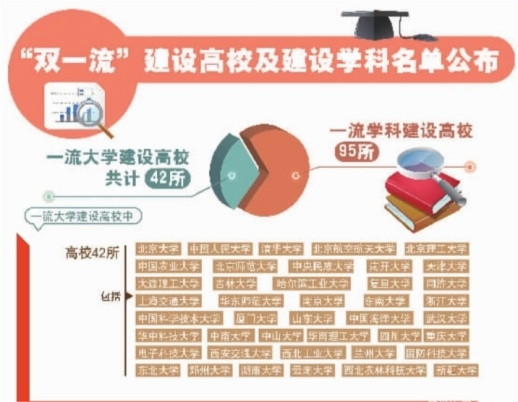 9月21日上午,教育部、财政部、国家发展改革委公布世界一流大学和一流学科(简称“双一流”)建设高校及建设学科名单,这意味着我国“双一流”建设进入实施阶段。