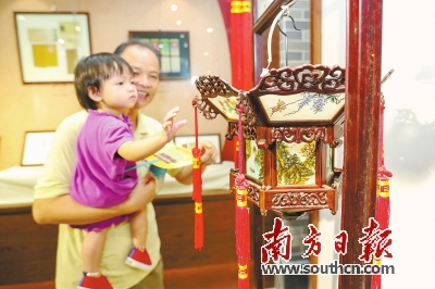 展览现场,市民欣赏展出的精美宫灯。南方日报记者 李细华 摄