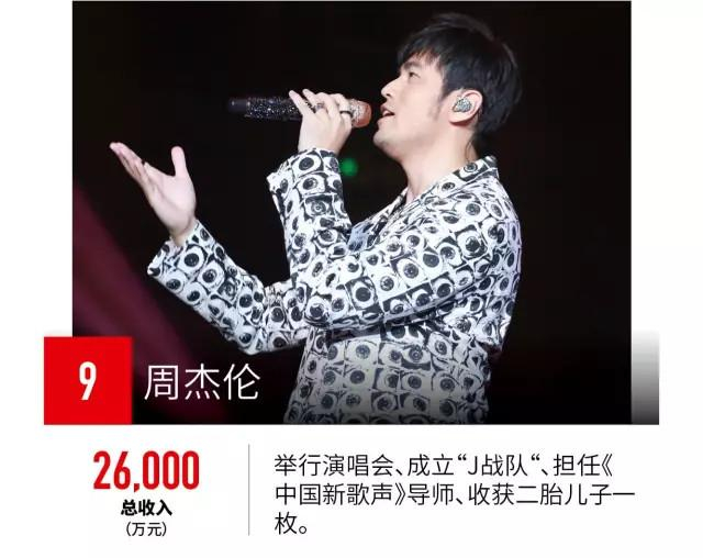 凭借2016“地表最强”世界巡回演唱会、《中国新歌声》导师身份等,周杰伦位列今年名人榜第九位。