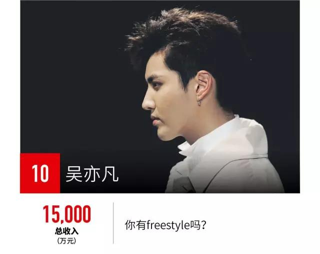 “小爷”吴亦凡位居榜单第十位。其首次以制作人身份加盟音乐节目《中国有嘻哈》燃爆2017,将国内的嘻哈音乐从地下搬上荧屏。