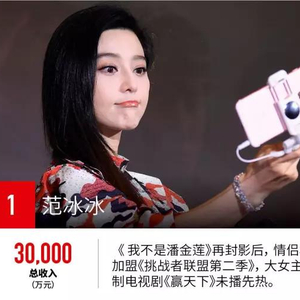今年的榜单状元仍是范冰冰,这也是她第五年蝉联本榜单之冠,是当之无愧的“王者”。在过去一年中,范冰冰凭借电影《我不是潘金莲》村姑李雪莲一角再封影后。而由其主演并参与投资的女性励志电视剧《赢天下》未播先热,吸引天猫技术以4.8亿元天价购买其网络独播权,范冰冰的吸金能力可见一斑。