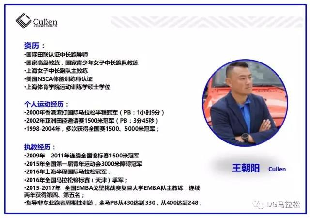 备注:DG马拉松公众平台即将推出国家级教练王朝阳的人生马拉松专访节目,敬请关注!