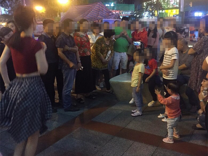 围观的小朋友也很快加入其中,学着美女主播舞动起来,左摇右晃,还学得有模有样的,顿时掌声不断。
