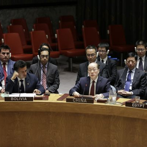 资料图片:9月11日,在位于纽约的联合国总部,中国常驻联合国代表刘结一(前排中)在安理会通过对朝鲜制裁决议后发言。联合国安理会11日一致通过第2375号决议,决定对朝鲜实施新的制裁,决议同时重申维护朝鲜半岛和东北亚和平与稳定,呼吁以外交和政治方式和平解决问题。新华社记者李木子摄