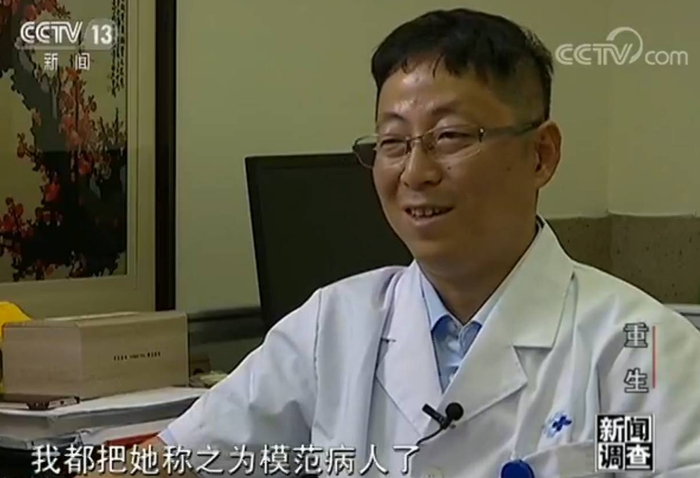 (主治医生)吴波主任:“我觉得她始终还是坚信自己能活下来,始终给我们展现的印象很正能量。我对她很有信心,我把她称之为模范病人,我就觉得真的是给她一点阳光就灿烂,她始终能找到平衡点,即使情况很差的时候,她连续吐了好多次,那天能吃一点东西她马上就笑了,这个让我很感动。”