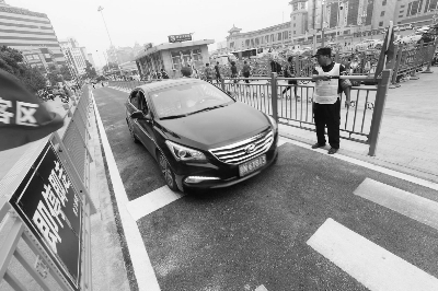 北京站西天桥北侧的第二临时落客区正式投入使用 摄/记者 杨益 |