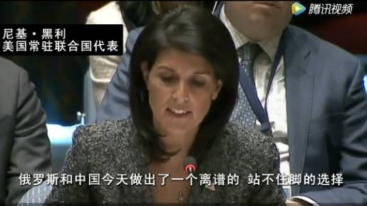 美国常驻联合国代表说:“俄罗斯和中国今天做出了一个离谱的、站不住脚的选择,他们拒绝让巴沙尔·阿萨德政权为滥用化学武器负责。今天是安理会史上令人感到痛心的一天。一些安理会成员为其他联合国成员虐杀他们自己的子民寻找借口”。