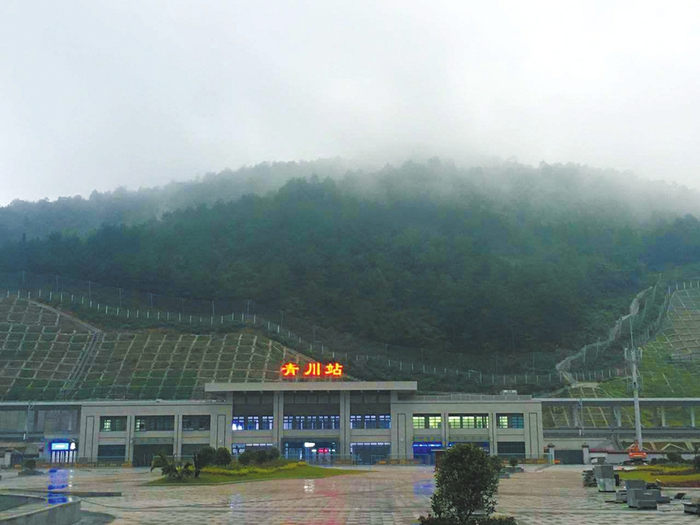 建筑特色:青川站站房采用灰色作为主色基调,同时车站现代化的体量、造型、色彩和材料综合运用,体现了当地悠久历史和深厚地域传统文化特色。