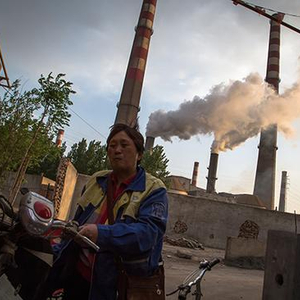 河北省邯郸市,村民经过一处工厂。有时候工厂排的烟遇上北风,飘到村子里,都带着一股股硫酸味。视觉中国 资料