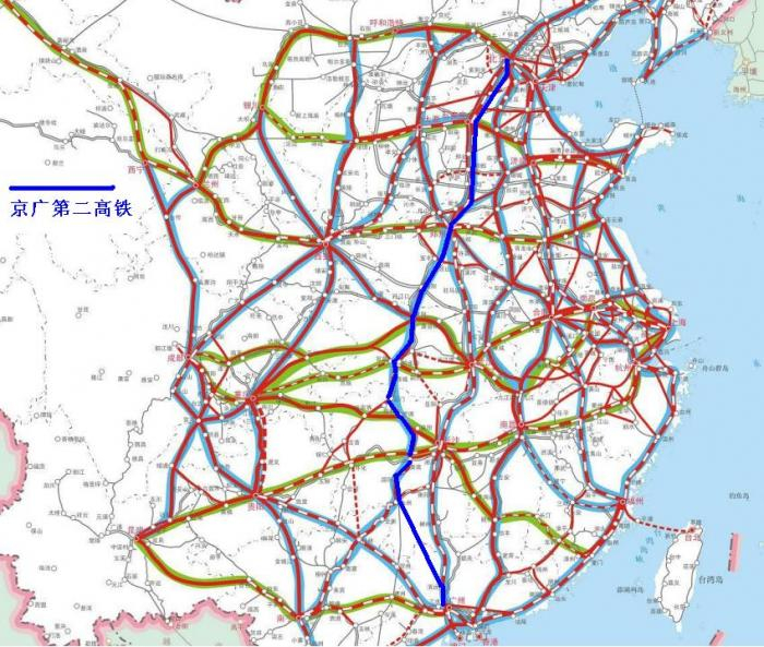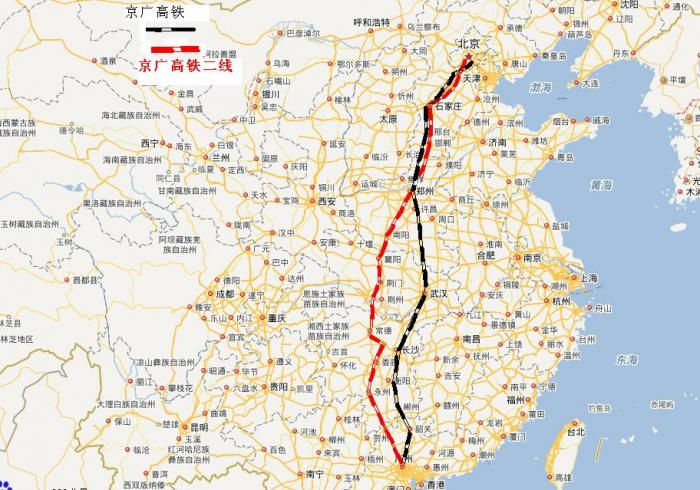 京广第二高铁开始讨论,是因为京广高铁目前运力也比较紧张。从目前看,京广第二高铁可能走最近新规划的北京到石家庄、邯郸城际铁路线,到达郑州之后,将走呼兰高铁(呼和浩特到南宁高铁)的郑州到永州段,再经过目前研究的永清广高铁(永州-清远-广州)段,变成第二京广高铁。