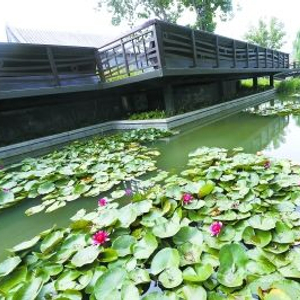曾经被填埋的玉河之上,店铺、煤棚、农贸市场密密麻麻,环境嘈杂脏乱,周边的老百姓都恨不得绕着道儿走。玉河二期工程完工后,修复浅水景观河道,加大绿化面积,并增加了文化休闲景观。清澈的流水通过蜿蜒曲折的河道,一群群金鱼欢快地嬉戏,荷花、菖蒲等沿山石堤岸自在生长。