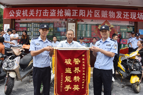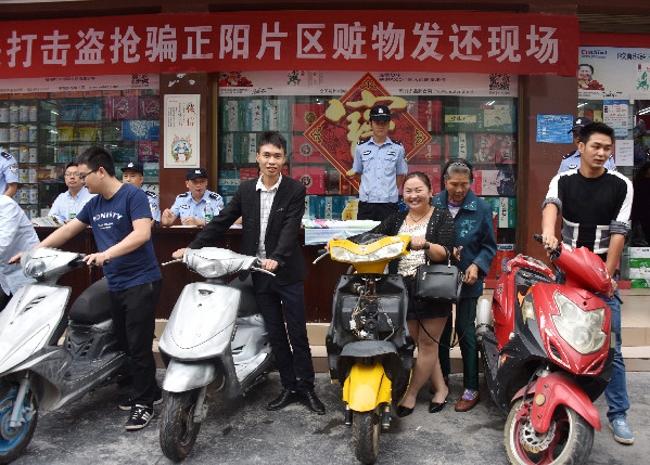 破案后,正阳派出所于9月21日举行赃物公开发还仪式,将追回的8辆摩托车分别发还给失主,得到失主好评。