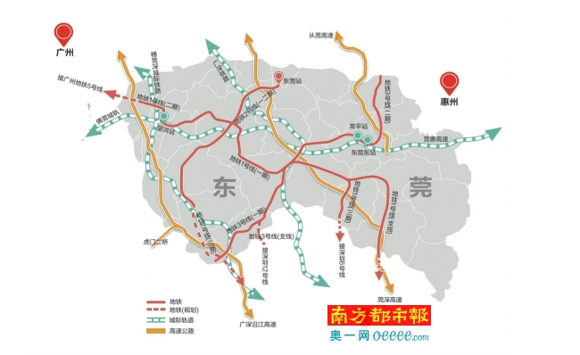 根据十三五规划,2022年左右,广深莞的轨道交通全线开通。届时,从东莞去广州和深圳,不用走出地面,就直接在地下的地铁轨道交通等就可以完成。