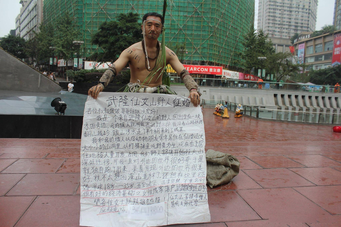 街头现“野人”征婚 行为高调引围观