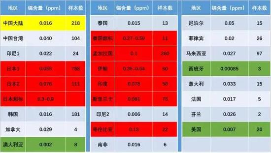 世界各国大米镉污染现状