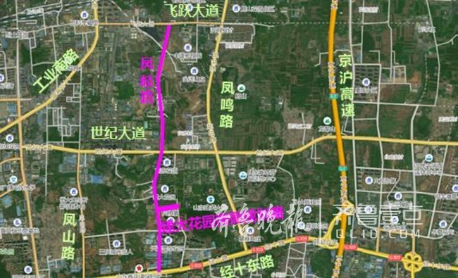 凤岐路位于历城区长岭山片区与雪山片区之间,南起经十东路,北至飞跃大道,红线宽度50米,绿线宽度60-70米,长度4509.538米,为城市主干路,是规划路网系统中的重要组成部分。